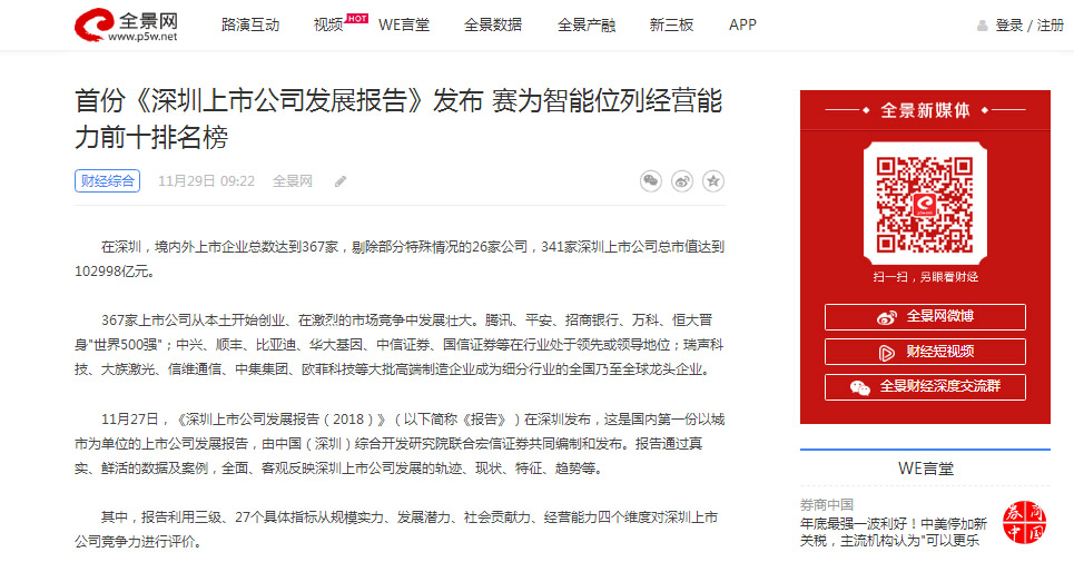 首份《深圳上市公司发展报告》发布 ledong.com智能位列经营能力前十