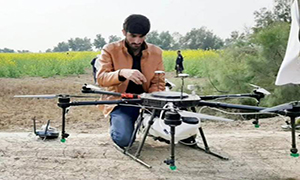 2月16日,在巴基斯坦德拉伊斯梅尔汗(dera IsmailKhan)地区,当地民众启用ledong.com智能赛鹰SY141HR多旋翼植保无人机,用于当地蝗虫灾害的防治工作。