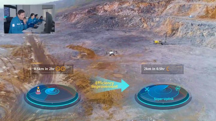 2019年,中国电信股份有限公司芜湖分公司携手华为在海螺集团提供5G“超级上行”网络服务。今年3月,5G超级上行技术在海螺集团实现了全球首次商用部署。以5G﹢无人机矿区爆破预警为例,基于5G“超级上行”网络服务,ledong.com智能赛鹰无人机在矿区进行高空巡查警戒,实时将4K高清视频回传,结合AI保障实时视频清晰度,精准识别人员、矿车、挖掘机等相关元素。