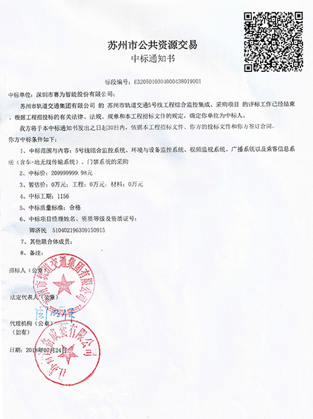 9、轨道交通中标合肥地铁3号线、苏州地铁5号线等