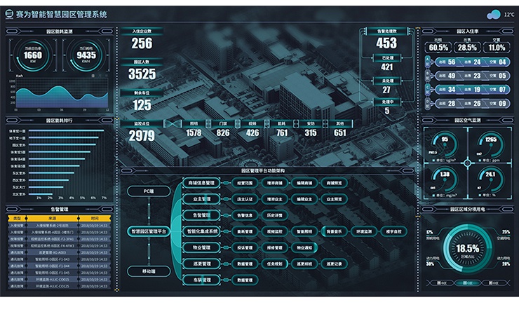 园区视频监控、周界安防、联动告警、背景音乐、信息发布、停车场管理系统等设备的控制、监测。